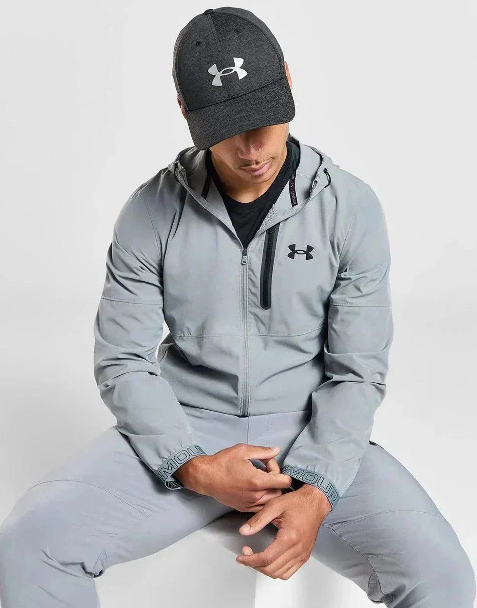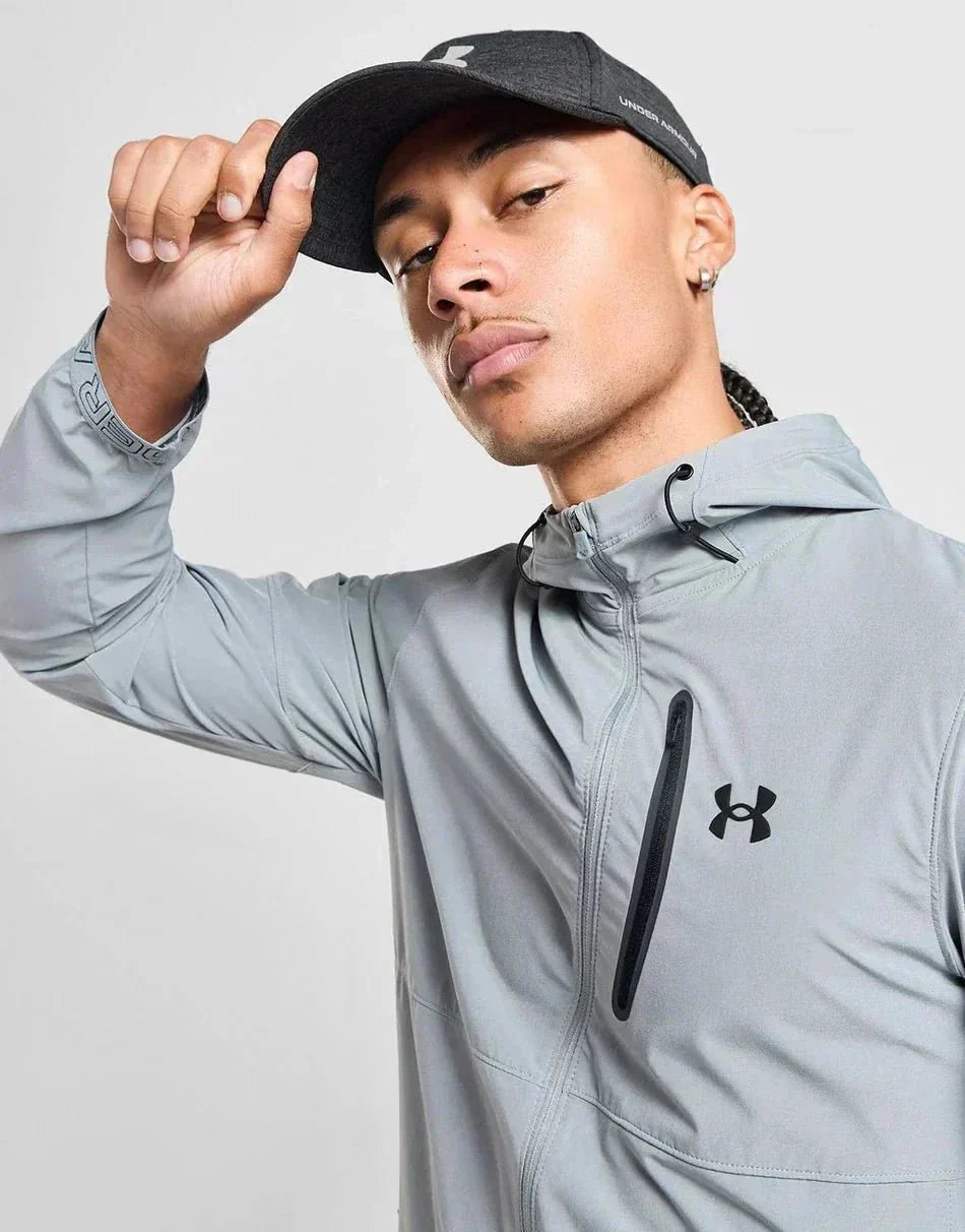 Améliorez vos couches avec cette veste tissée Lock-Up pour hommes d'Under Armour. Dans un coloris Steel, cette veste est fabriquée en tissu poly tissé lisse et léger pour une tenue durable. Il est doté d'un cordon de serrage réglable à travers la capuche et d'une fermeture entièrement zippée pour augmenter la couverture, ainsi que de poignets élastiqués pour sécuriser l'ajustement. Il est doté de poches sur le devant pour un rangement rapide et facile, et est orné de micro-bandes sur les épaules et de la marque Under Armour emblématique sur la poitrine. Lavable en machine. | Notre mannequin mesure 5'11" avec un tour de poitrine de 38" et porte une taille medium.